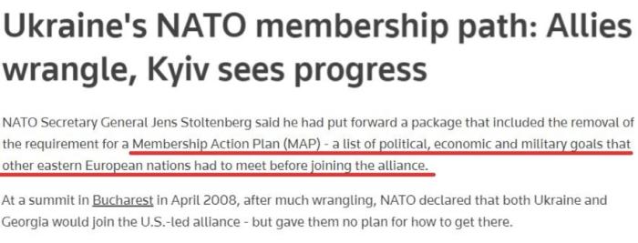 通過此舉,北約這次不只是像2008年布加勒斯特峰會時那樣,僅僅發(fā)表一份承諾將最終接納烏克蘭的聲明,而是同時給出了烏克蘭如何加入的捷徑。
