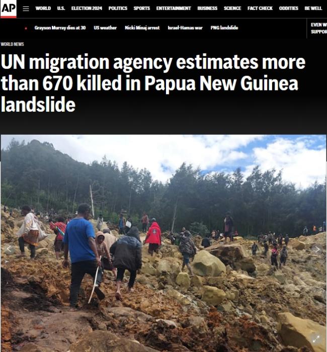 據此前報道,當地時間24日凌晨3時左右,位于巴布亞新幾內亞首都莫爾斯比港西北約600公里的一個村莊發生山體滑坡,預計上百人遇難。