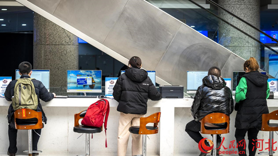 在曹妃甸區政務中心大廳,前來辦理審批手續的相關人員正在自助打印區打印文件。 季春天攝