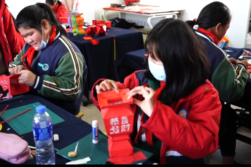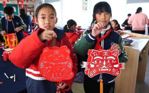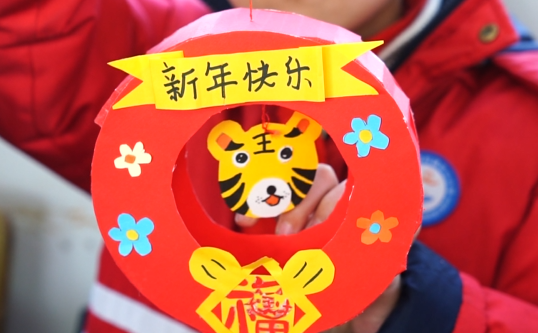 曹村鎮學校曼妙燈彩課程指導老師李仁秋說:“做一個虎年主題的燈彩,來迎接中國傳統的春節,也感受下中國傳統的文化。”