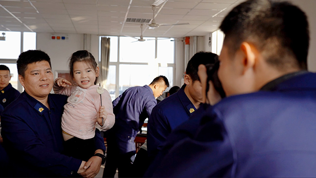 室外寒氣襲人,室內溫暖四溢,其樂融融,消防救援人員及家屬在消防站貼窗花、掛燈籠……參觀中,孩子們稚嫩的聲音回蕩在消防站中,增添了一絲童趣;包水餃環節,大家分工協作,你搟皮,我包餡,氣氛和諧,洋溢著“家”的味道,讓這個冬天情意滿滿。吃餃子、話家常,應和著這溫暖的氛圍,大家圍坐在一起感受著濃濃的年味,昔日嚴肅的食堂充斥著歡聲笑語。在場一位消防救援人員的家屬表示:“孩子爸爸平時回家少,工作環境又比較危險,作為家屬我們能做的就是全力支持他們的工作,今天來隊參觀對他平時的工作也多了一分了解,以后我會更加支持他的!”