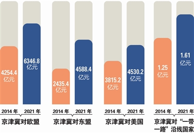 水深則魚悅,城強則賈興。從2014年至今,京津冀地區(qū)進(jìn)出口規(guī)模連創(chuàng)新高,2019年首次超過4萬億元,2021年更是達(dá)到4.44萬億元。在此基礎(chǔ)上,搶抓RCEP帶來的政策紅利,京津冀外貿(mào)出口規(guī)模有望再上新臺階。(記者 張兆瑞)