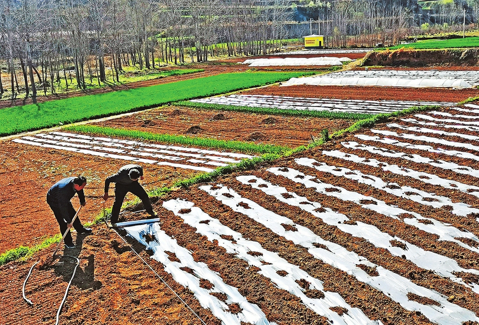 4月2日,垣曲縣南聯村村民正在田間地膜覆蓋種植早熟糯玉米。該村村民發揮區域銷售優勢,搶時保墑地膜覆蓋種植白糯、黑糯、香禾糯3個優質糯玉米品種100畝。這類糯玉米產量高、口感好,4月初播種,6月下旬即可上市,畝收入可達6000多元,比傳統玉米經濟效益提高3倍多。(魯國林攝)