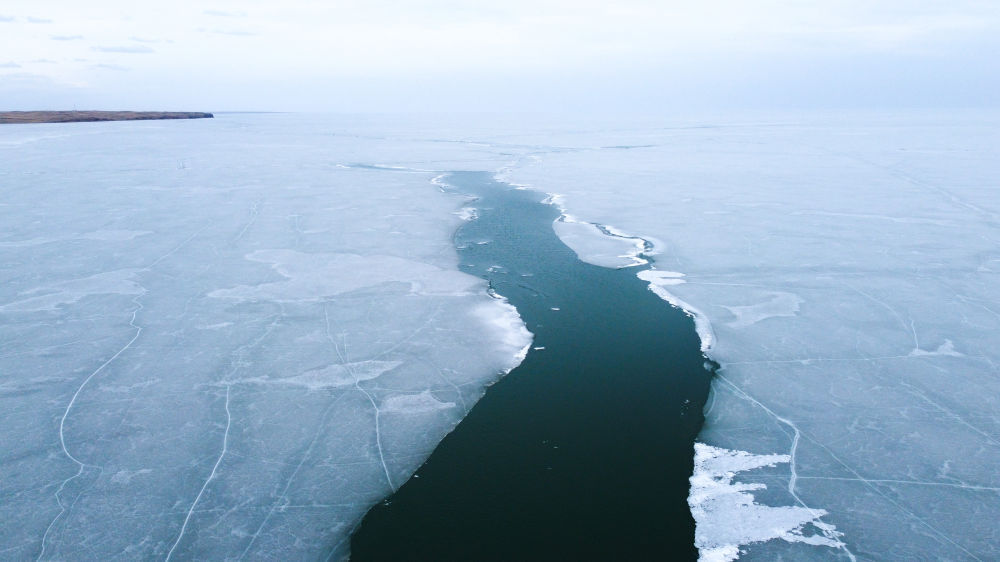 這是4月17日拍攝的呼倫湖開(kāi)湖景象(無(wú)人機(jī)照片)。新華社記者 王楷焱 攝