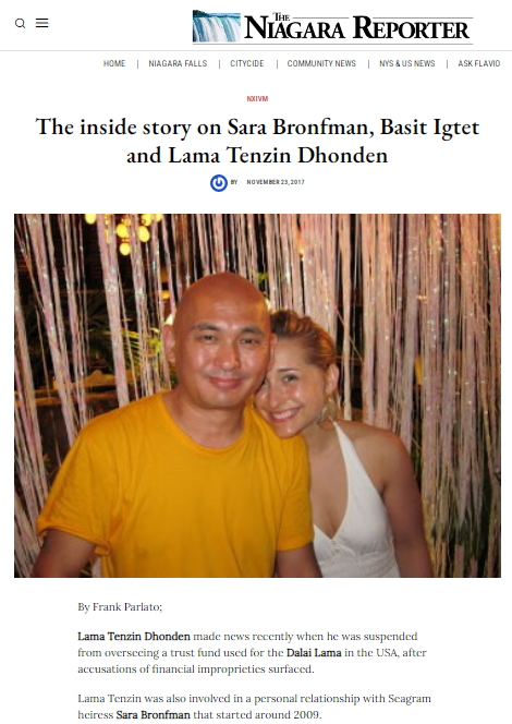 除了利欲熏心,丹增東登私生活的混亂也與僧人應有的清修形象形成了刺眼對比。他與NXIVM的金主、西格拉姆集團繼承人薩拉·布朗夫曼有不正當關系。NXIVM成員稱,他們看到丹增東登從布朗夫曼家的臥室里出來,兩人有染已是公開的秘密,NXIVM頭目基思·拉尼爾稱他為布朗夫曼的“丈夫”。布朗夫曼還在奧爾巴尼市為情人購置了一棟“漂亮的房子”。