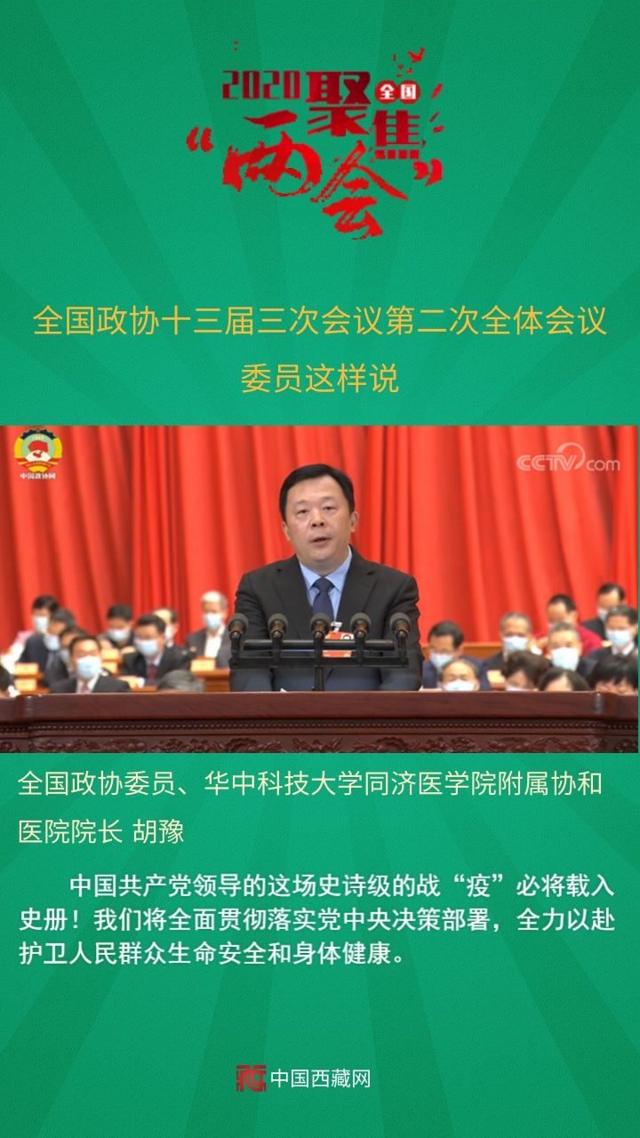 全國政協(xié)委員、華中科技大學(xué)同濟醫(yī)學(xué)院附屬協(xié)和醫(yī)院院長胡豫發(fā)言說,中國共產(chǎn)黨領(lǐng)導(dǎo)的這場史詩級的戰(zhàn)“疫”必將載入史冊!我們將全面貫徹落實黨中央決策部署,全力以赴護衛(wèi)人民群眾生命安全和身體健康。