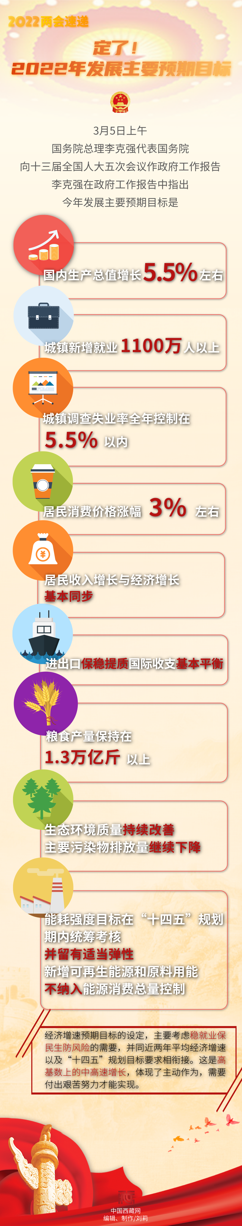 【兩會速遞】定了!2022年發展主要預期目標公布 國內生產總值增長5.5%左右