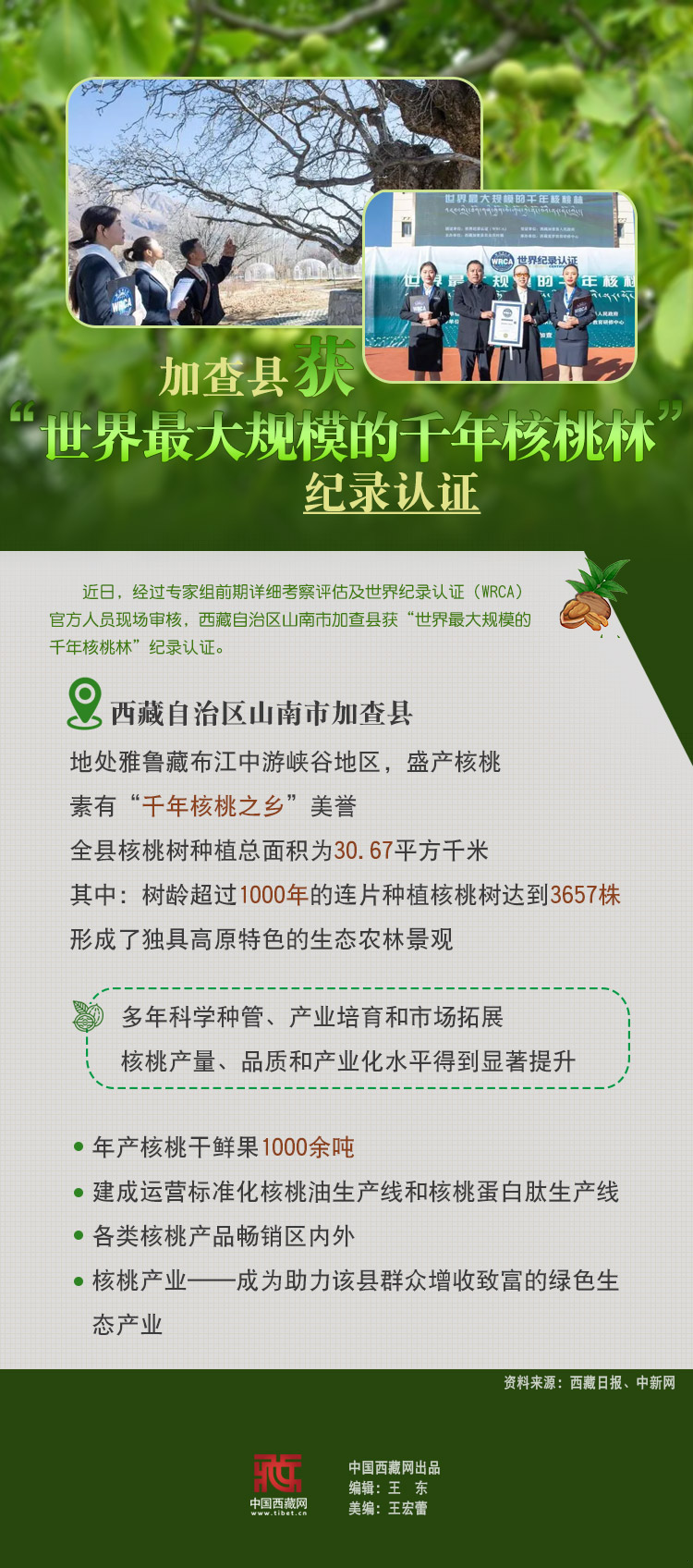 海報|加查縣獲“世界最大規模的千年核桃林”紀錄認證