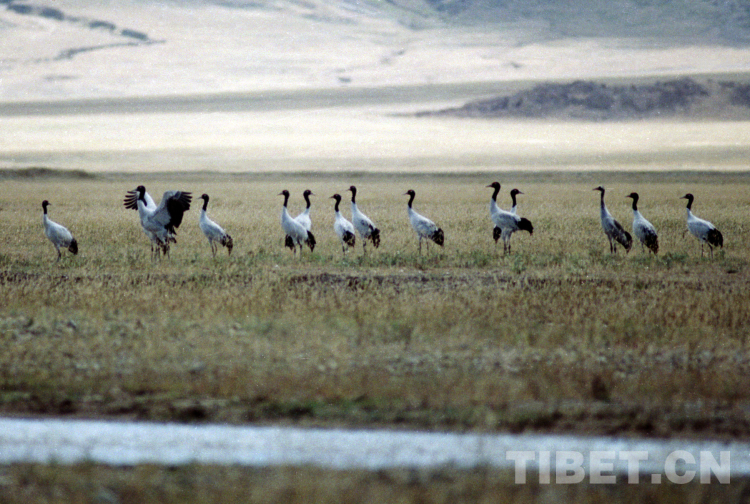 這是在藏北高原申扎縣濕地棲息的國家一級保護(hù)動物黑頸鶴(唐召明2001年攝)