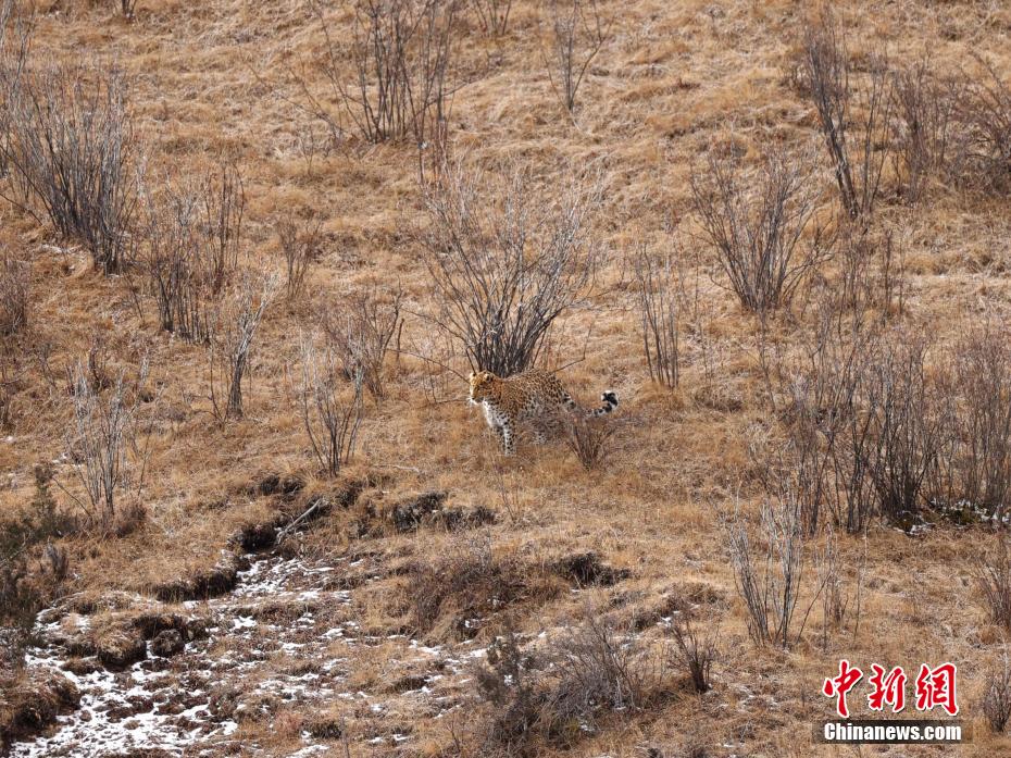 近日,在三江源國家公園瀾滄江源園區昂賽保護分區內,當地一位牧民和生態體驗者,分別拍攝到珍貴的金錢豹畫面。三江源國家公園是中國首個國家公園體制試點,包括長江源(可可西里)、黃河源、瀾滄江源三個園區在內的“一園三區”,是青藏高原生態系統的典型代表,分布雪豹、金錢豹、藏羚羊、黑頸鶴等珍稀物種,被稱“高原野生動物王國”“高寒生物種質資源庫”。圖為女性牧民仁青央忠拍攝的金錢豹。 仁青央忠 攝