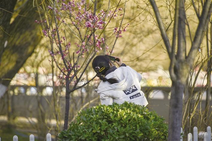 草地返青,冒出嫩綠的草尖,街邊樹木也開始抽芽。園林工人們搶抓春季園林綠化養護的黃金時期,開始進行春灌工作。