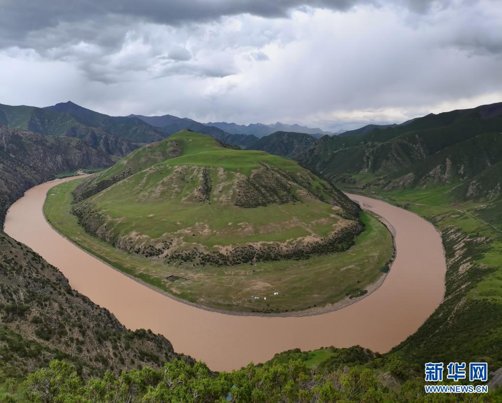 這是7月23日在玉樹藏族自治州治多縣葉青村拍攝的“萬里長江第一灣”。新華社記者 呂雪莉 攝