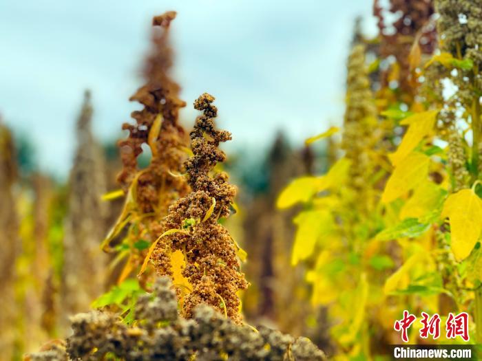 24日,仲秋時節,地處中國“聚寶盆”柴達木盆地腹地的青海省海西州烏蘭縣迎來藜麥成熟豐收季,姹紫嫣紅美不勝收。