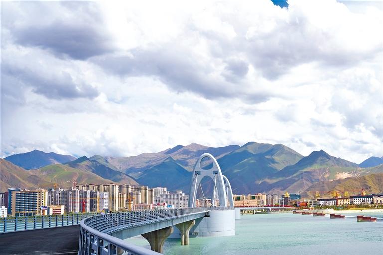 據了解,中華文化公園項目占地面積1057畝,位于拉薩河兩岸,東起柳梧大橋,西至拉貢大橋,環抱約3000畝拉薩河水域。公園以“中華民族偉大復興夢”為主題,以“鑄牢中華民族共同體意識”為主線,集公共藝術與雕塑31處,南北兩岸之間由全長1093米的和美連心橋連接。和美連心橋作為標志性建筑物,可供行人及非機動車通行。這座情感之橋,將中華各民族文化更緊密地串聯在一起,見證著深厚的民族團結情。