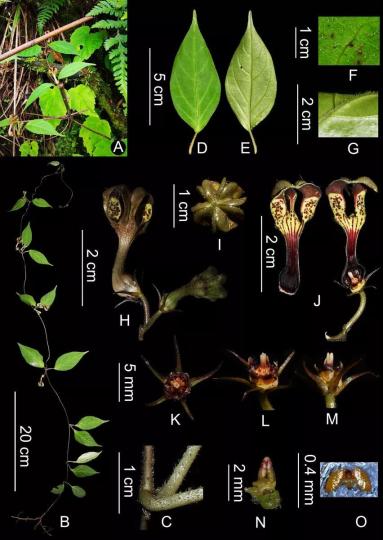 2021年7月中旬至8月初,由西雙版納植物園星耀武研究員率隊的聯合考察隊,對西藏日喀則地區喜馬拉雅南坡的維管植物進行了考察和標本采集。考察人員在吉隆縣薩勒鄉發現一種正處于盛花期的吊燈花屬未知植物。通過解剖拍照、文獻查閱及相似種的模式標本核對后,最終確認為一新種。根據其模式產地,將其命名為吉隆吊燈花(Ceropegia jilongensis)。