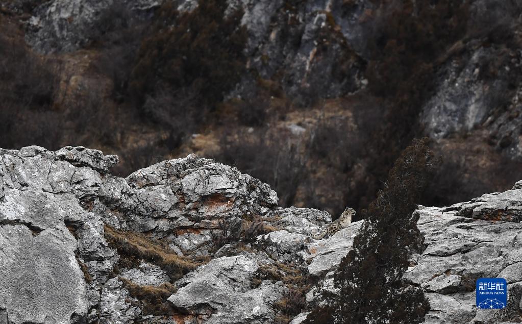 2月21日,在青海省玉樹藏族自治州雜多縣昂賽鄉境內的昂賽大峽谷內,一只雪豹正在活動。新華社記者 張宏祥 攝