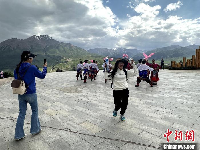 圖為游客與祁連民眾一起跳舞。 李雋 攝