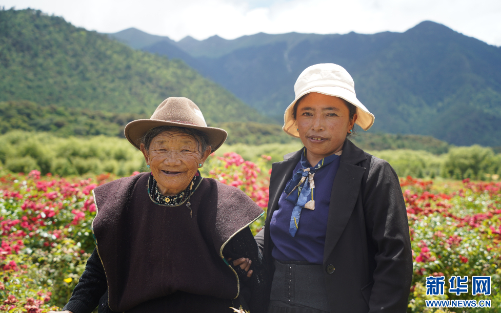 家在朵當(卡達)村的索朗卓瑪帶著自己81歲的母親前來賞花。她說,“村子里能開出這么漂亮的花,感到特別高興。帶媽媽來賞花,再拍拍照,很開心。”母女二人的笑臉在花朵的映襯下更加燦爛。
