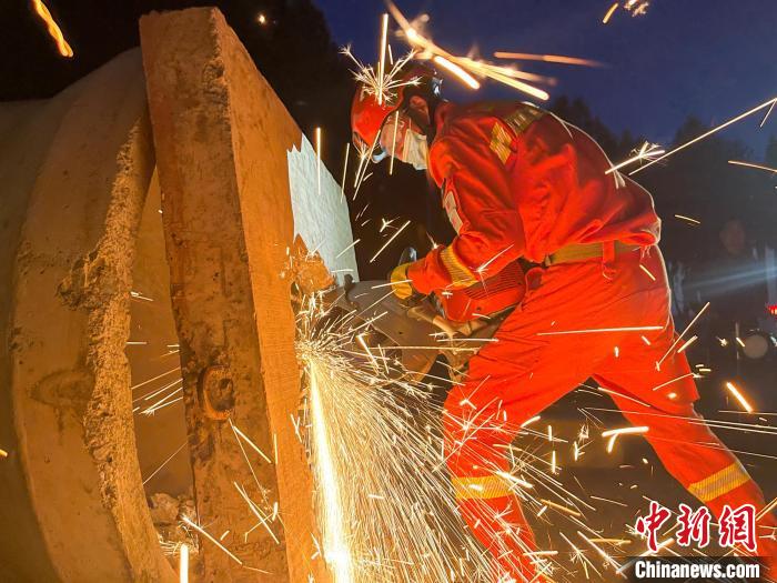 地震救援競(jìng)賽現(xiàn)場(chǎng),消防員正在進(jìn)行破拆。姚天銳 攝