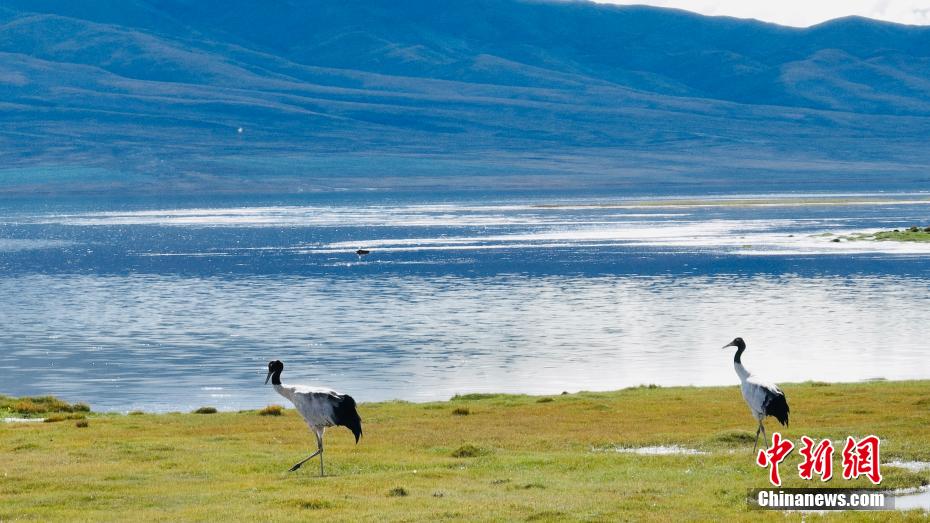 金秋9月,天氣漸涼,位于柴達木盆地的青海省海西州都蘭縣阿拉克湖國家濕地公園也日漸喧鬧起來,大批的候鳥從北方遷徙至此,提前來此過冬。9月18日,都蘭縣融媒體中心記者拍攝到了國家一級保護動物黑頸鶴活動的影像。畫面中,一對國家一級重點保護野生動物、高原特有鶴類黑頸鶴在都蘭縣巴隆鄉阿拉克湖國家濕地公園的草原上嬉戲、覓食、“翩翩起舞”。阿拉克湖國家濕地公園位于青海省都蘭縣南部,屬于昆侖山系東部高原腹地,在布爾汗布達山南麓東西向延伸的河谷盆地內。阿拉克湖濕地公園區域雖氣候寒冷,但這里高寒沼澤草甸景象壯觀,野生動物眾多,具有獨特的生物多樣性價值。圖為兩只黑頸鶴在湖邊漫步。
