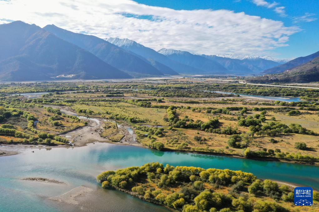 這是在林芝雅尼國家濕地公園尼洋河畔拍攝的生態監測系統(10月24日攝,無人機照片)。新華社記者 劉天宇 攝