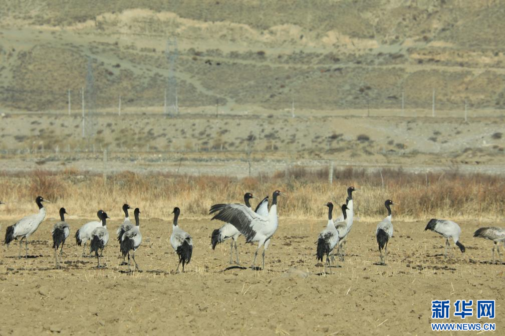 3月4月,在西藏墨竹工卡縣境內拍攝的黑頸鶴。新華網發 洛克 攝
