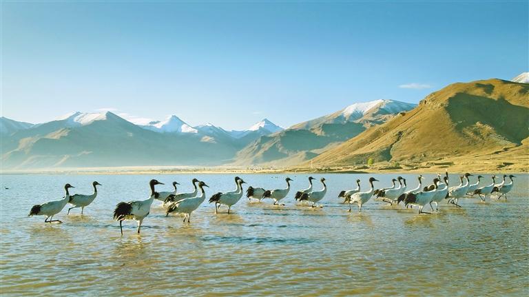 黑頸鶴作為高原上的珍稀鳥類,是拉薩與林周生態環境中的重要組成部分。它們優美的身姿和悠揚的叫聲,成為這片土地上不可或缺的生態符號。中國野生動物保護協會科學考察委員會副主任委員、北京林業大學博士研究生導師李連成說:“拉薩地區作為黑頸鶴重要的越冬地,得到了當地政府部門和社會各界的高度重視,黑頸鶴越冬種群數量不斷增加,活動區域不斷擴大。2022年的調查數據顯示,拉薩地區的黑頸鶴越冬種群數量約為3375只,其中林周縣有2938只。目前,新一輪針對林周縣黑頸鶴越冬種群數量的調查工作正積極推進中。”