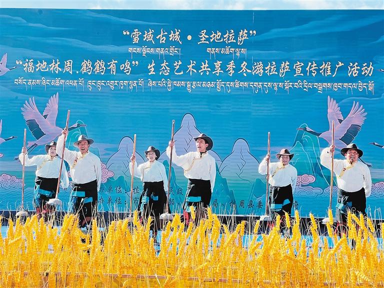 近日,由拉薩市人民政府主辦、拉薩市委宣傳部、拉薩市文化和旅游局,林周縣委、縣政府承辦的“雪域古城·圣地拉薩”“福地林周·鶴鶴有鳴”生態藝術共享季之“冬游拉薩”宣傳推廣活動在林周縣虎頭山水庫旁舉行。來自區內外的游客歡聚一堂,聆聽那鶴鶴有鳴的動人樂章,開啟了一場獨特的冬日之旅,感受人與自然和諧共生的美好畫面。