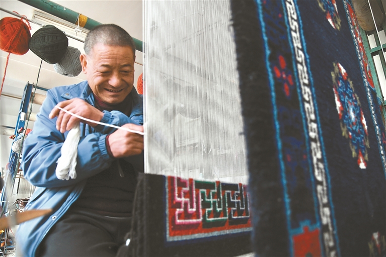 “這面藏毯織好后,就要送進中國工藝美術館收藏了!”楊永良撫摸著手中正在織造的藏毯,眼含笑意,將這門家庭與村落世代相傳的手藝娓娓道來。