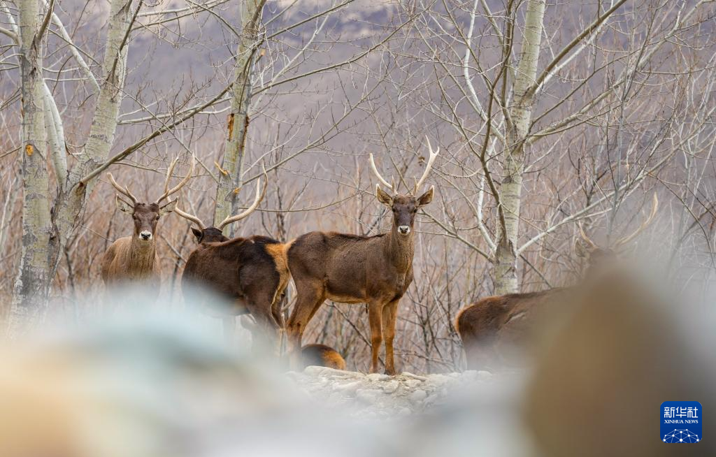 3月15日,在西藏山南市乃東區結巴村,國家一級保護動物白唇鹿現身覓食。隨著當地生態環境持續改善、生物多樣性保護力度不斷加大,白唇鹿數量逐漸增加,成為高原生態向好的生動寫照。