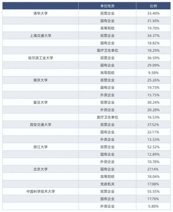 而除去北京大學和復旦大學,在其他7所高校中,國有企業均占比第二。