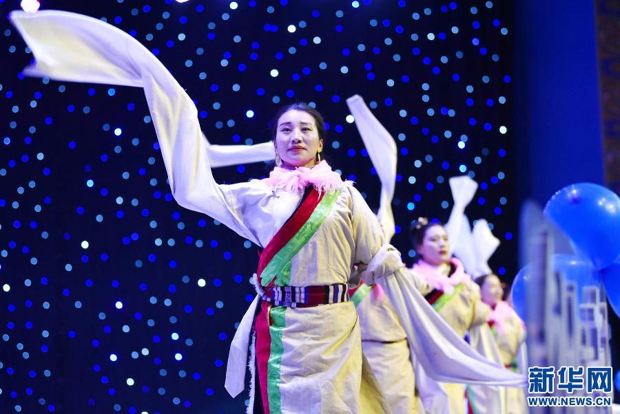 演員在西藏那曲第二屆高校畢業生創業大賽決賽現場表演(11月30日攝)。新華社記者 張汝鋒 攝