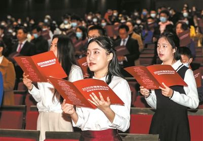 活動現場,北京主會場學生領唱《憲法伴我們成長》,從優美的歌聲中體會憲法力量。北京外國語大學黨委書記王定華宣讀了第五屆全國學生“學憲法 講憲法”全國總決賽獲獎名單。