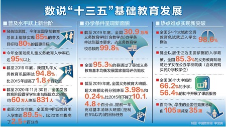 截至2019年底,全國30.9萬所義務(wù)教育學(xué)校(含教學(xué)點(diǎn))辦學(xué)條件達(dá)到基本要求,占義務(wù)教育學(xué)校總數(shù)的99.8%;全國95.3%的縣通過縣域義務(wù)教育基本均衡發(fā)展國家督導(dǎo)評(píng)估驗(yàn)收。[詳細(xì)]