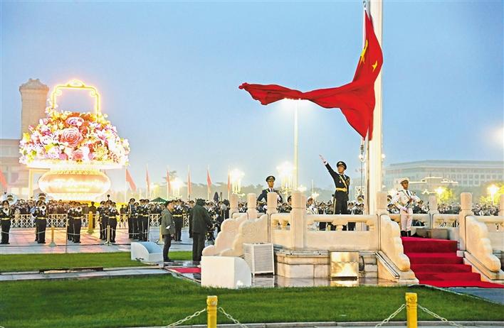 10月1日清晨,隆重的升國(guó)旗儀式在北京天安門廣場(chǎng)舉行,慶祝中華人民共和國(guó)成立71周年。新華社記者 任超 攝