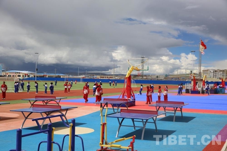 圖為西藏自治區那曲市色尼區杭嘉中學的學生們正在操場上進行各種體育活動 攝影:吳建穎