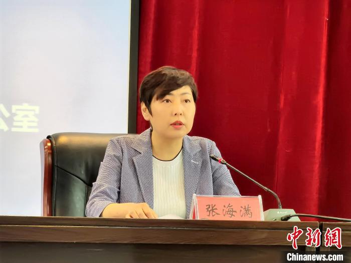 圖為青海省人民政府國有資產監督管理委員會副主任張海滿介紹人才支持政策等情況。 祁增蓓 攝