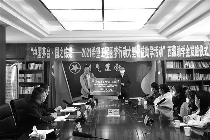 10月25日,共青團西藏自治區委員會、西藏青少年發展基金會和貴州茅臺酒廠(集團)有限責任公司在拉薩舉行“中國茅臺·國之棟梁”2021希望工程圓夢行動大型公益助學活動西藏助學金發放儀式。