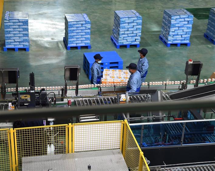 西藏奶產品企業員工在包裝學生飲用奶產品
