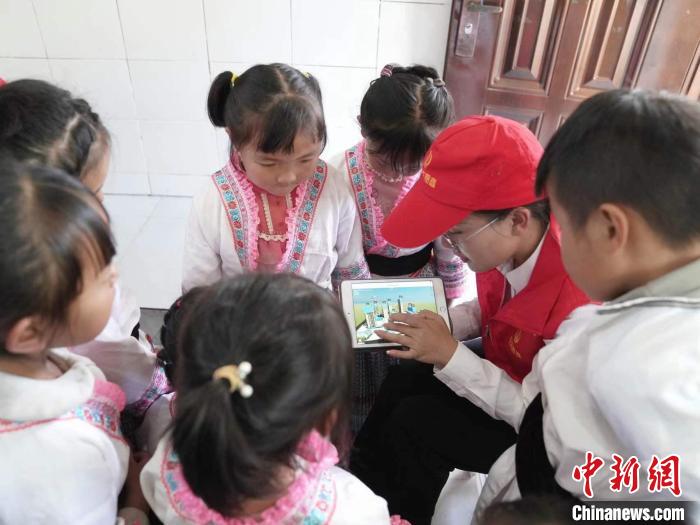 圖為孩子們觀看特別制作的施工現場模擬視頻。 李繼嬌 攝