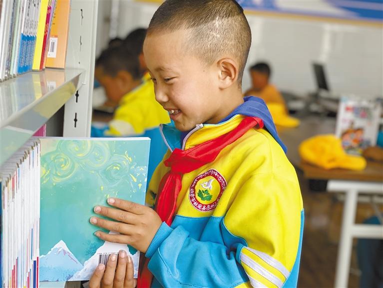 在蘇州援建的蘇萱圖書室內,林周縣蘇州小學學生正在挑選自己喜歡的讀物。