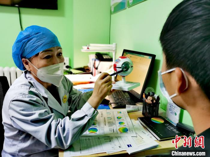 圖為青海省一醫療機構眼科專家向患者講解近視問題。 張添福 攝