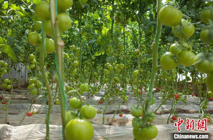 圖為溫室大棚內(nèi)種植的西紅柿。 謝牧 攝