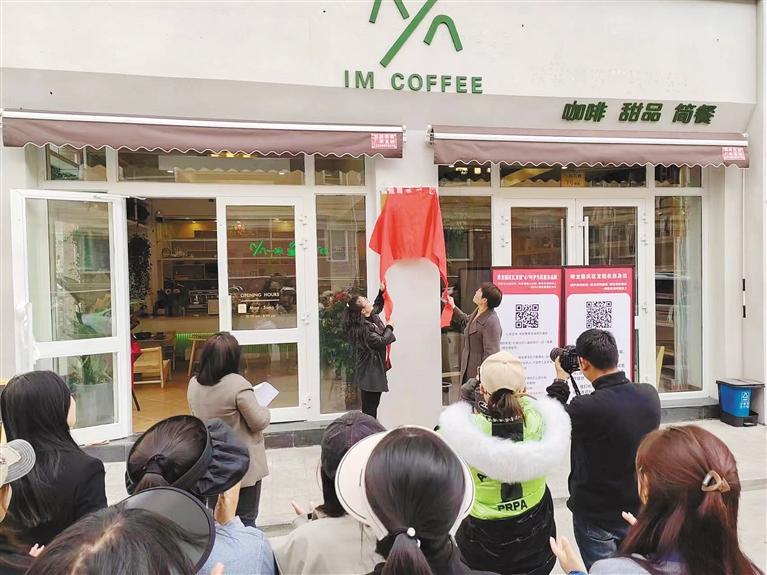 圖為“龍姐”咖啡婦女兒童維權“e”站揭牌現場。記者 盧文靜 攝