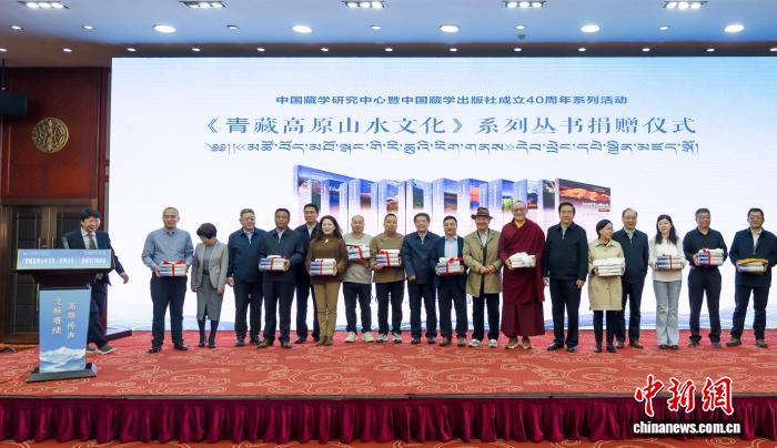 4月24日,《青藏高原山水文化》系列叢書(shū)捐贈(zèng)儀式現(xiàn)場(chǎng),圖書(shū)館和研究機(jī)構(gòu)代表獲贈(zèng)系列叢書(shū)。 (中國(guó)藏學(xué)出版社供圖)