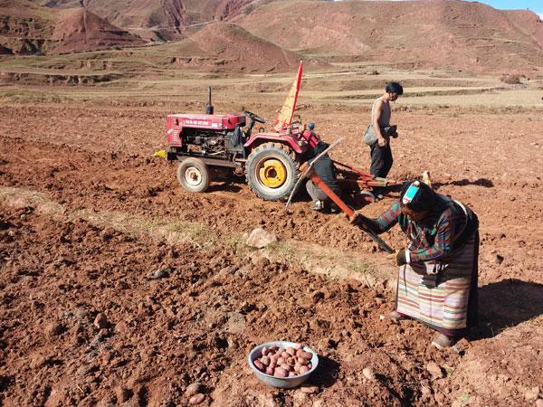 在充分調(diào)研的基礎(chǔ)上,嘎瑪澤加從本村實(shí)際出發(fā),積極爭(zhēng)取項(xiàng)目、資金支持,于2014年起牽頭在全村推廣紅土豆和藍(lán)青稞特色產(chǎn)業(yè)種植工作。經(jīng)過不斷努力,成功將覺恩村紅土豆種植面積擴(kuò)大到1200畝、藍(lán)青稞1000畝,這兩項(xiàng)種植業(yè)每年為群眾創(chuàng)收430萬元,使群眾看到了發(fā)展特色種植產(chǎn)業(yè)帶來的實(shí)實(shí)在在的經(jīng)濟(jì)效益。