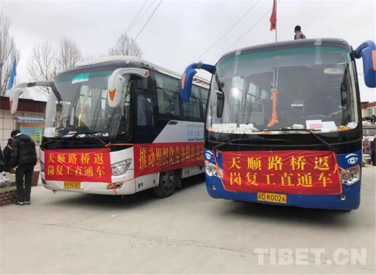 3月14日,西藏自治區(qū)日喀則市江孜縣首批115名外出務(wù)工人員在卡堆鄉(xiāng)集合,統(tǒng)一出發(fā)。在疫情防控特殊時(shí)期,江孜縣對(duì)首批前往天順路橋建設(shè)項(xiàng)目組施工地的115名務(wù)工人員,統(tǒng)一安排9輛運(yùn)輸車開(kāi)啟“一站式”免費(fèi)直達(dá)運(yùn)輸服務(wù)。衛(wèi)生防疫工作人員對(duì)專送車輛提前進(jìn)行消毒,并為務(wù)工人員進(jìn)行身體健康檢查,統(tǒng)一配發(fā)防護(hù)口罩。