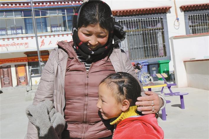 剛拆完石膏的髖關節脫位患兒索朗卓嘎高興地依偎在母親懷里。記者 黃志武 攝