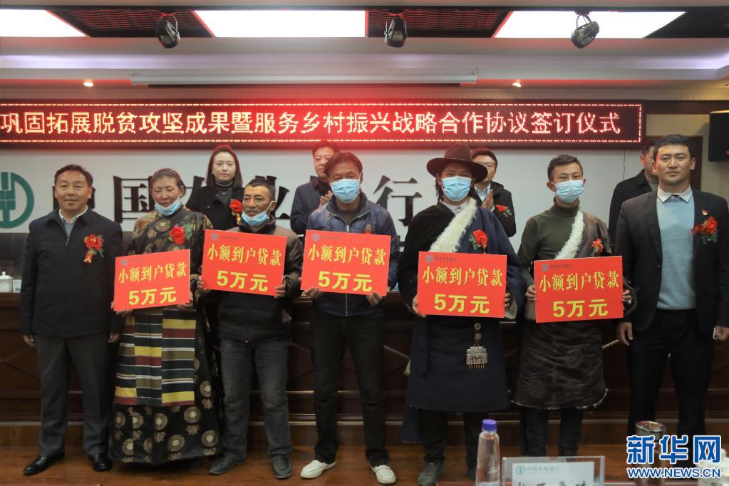近日,拉薩市當雄縣人民政府與中國農業銀行拉薩分行、西藏財信融資擔保有限公司簽訂鞏固拓展脫貧攻堅成果暨服務鄉村振興戰略合作協議,并發放5筆精準扶貧小額到戶貸款,13筆“惠農e貸”,2筆“牦牛產業貸款”。