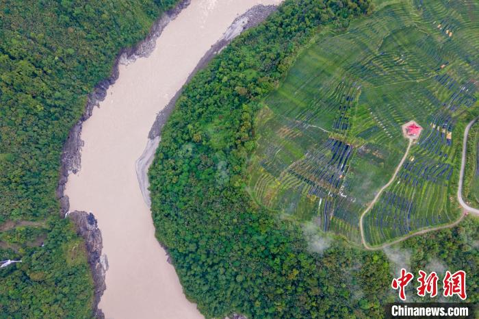 圖為西藏墨脫縣雅魯藏布江邊的茶園,如今茶葉已成為墨脫縣的特色產(chǎn)業(yè)。 江飛波 攝